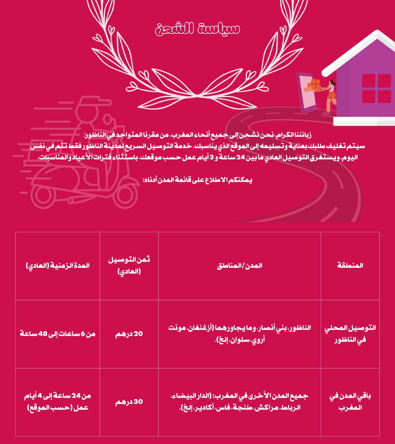• الشحن والتسليم